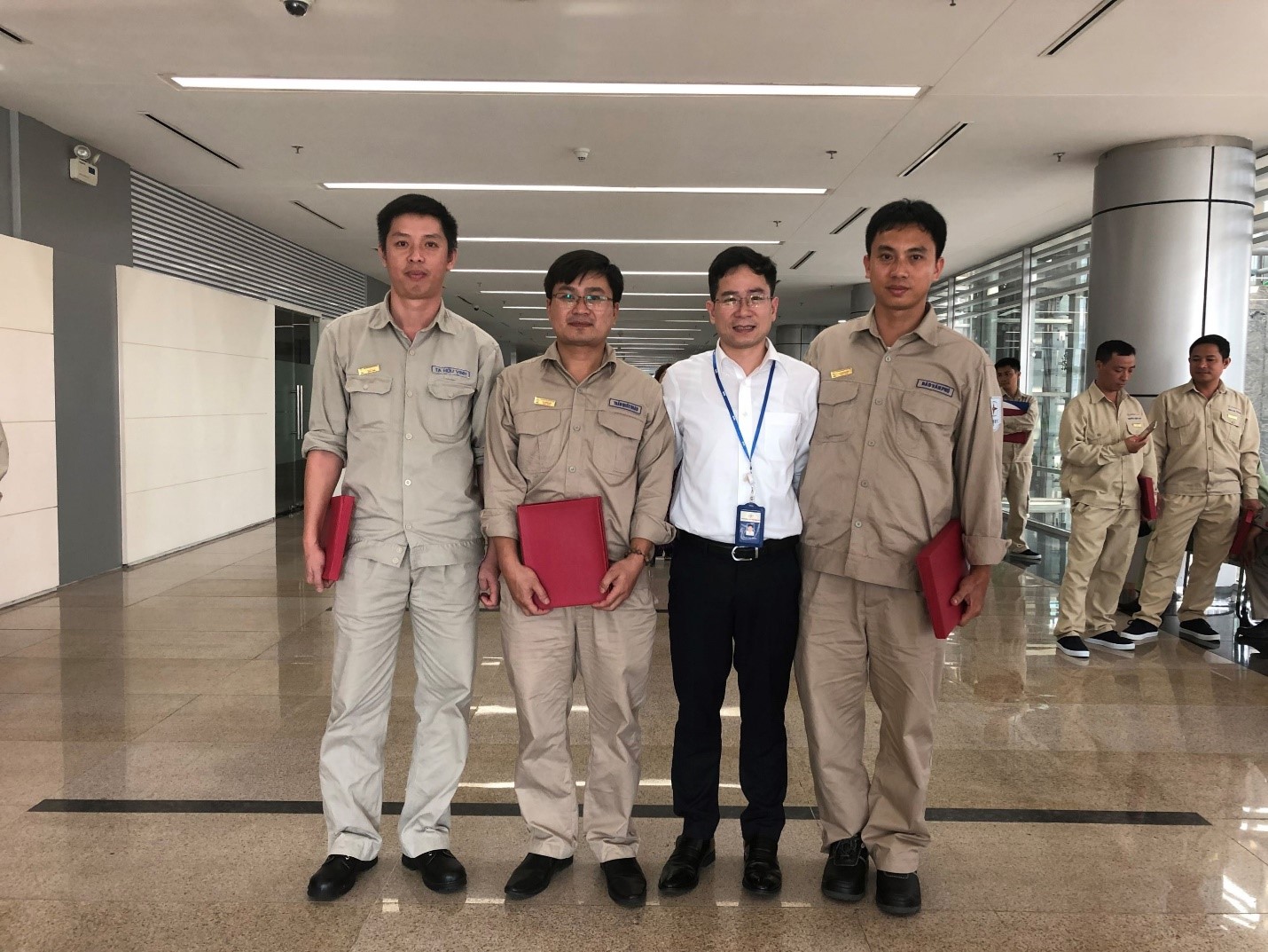 Anh Tạ Hữu Vinh (ngoài cùng bên trái) tại Chương trình biểu dương công nhân lao động và ATVSV giỏi, tiêu biểu giai đoạn 2017 – 2019