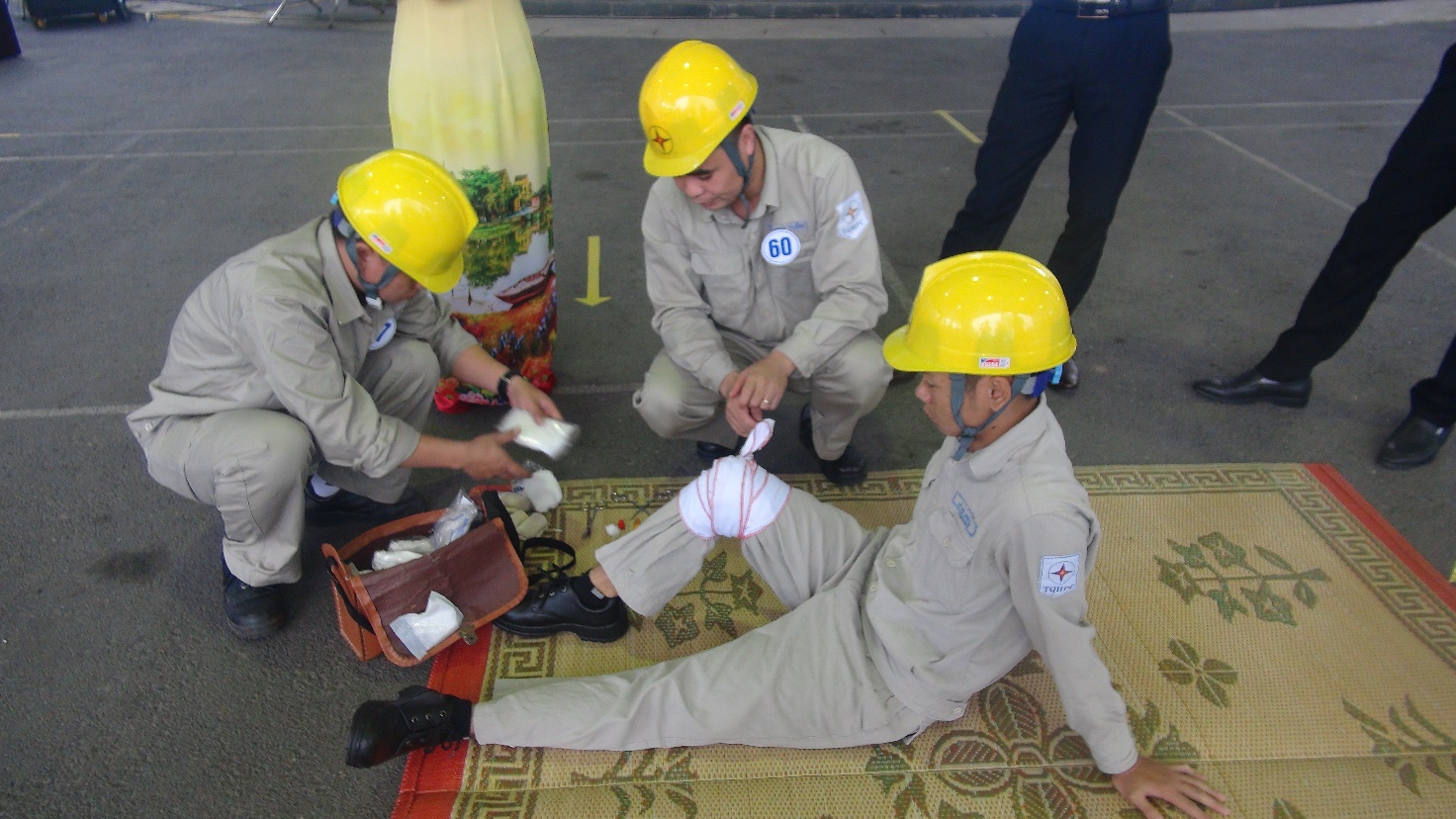 - Phần thi thực hành với các nội dung: Chữa cháy, cấp cứu người bị điện giật trên mô hình và các kỹ thuật sơ cấp cứu ban đầu.