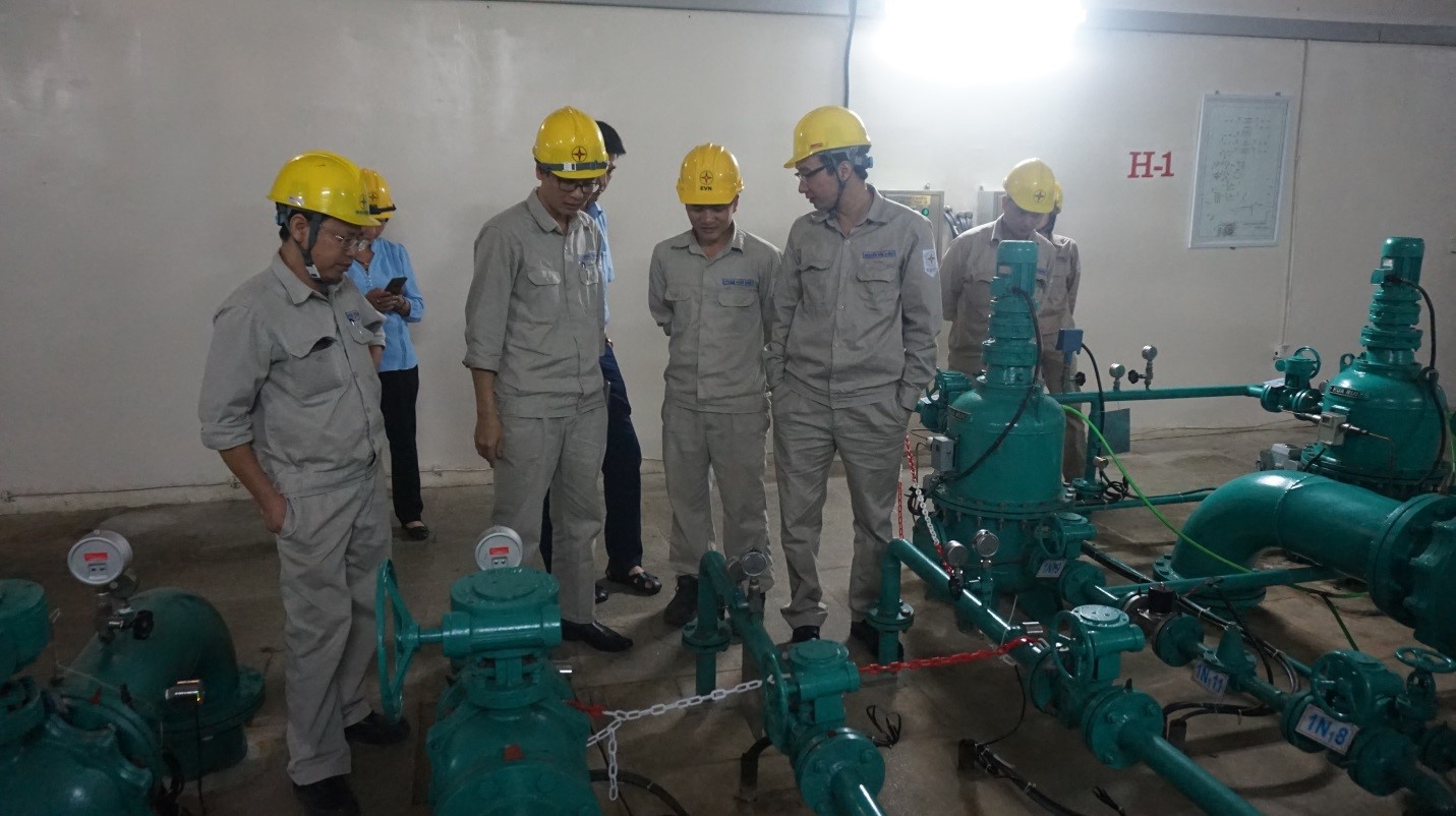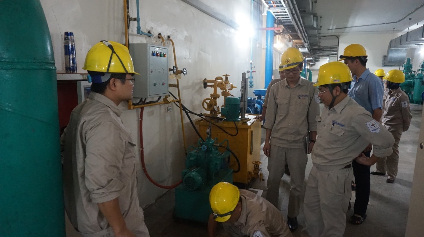 Đoàn kiểm tra đội công tác thực hiện sửa chữa hệ thống cứu hoả nhà máy